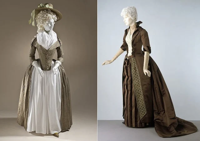 Vestido de 1790 e vestido de 1888.